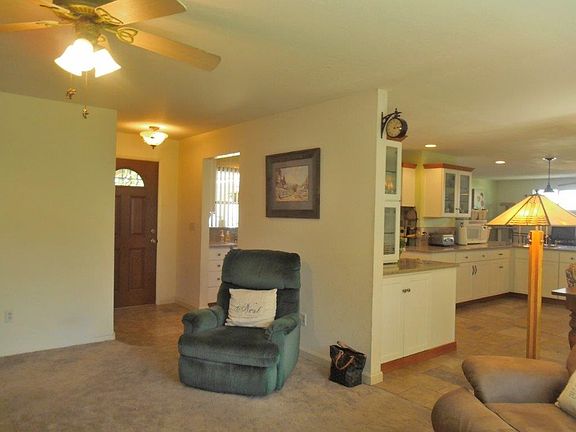 Gracious country living! A remodel created over 2000 sf of living in this one story country home with open living floor plan. Wood stove plus a propane enamel stove add comfort and ambiance around a spacious kitchen with custom cabinets and stainless appliances, dining area and family room. The home is 3 bedroom 2 bath, 2133sf plus large open kitchen, dining area that seats a table of 6-8 and family room. Both dining area and family room have 8' sliders that open to large covered patio and beautiful views out to the fully fenced rear yard filled with fruit trees, waterfall, garden shed and other outbuildings useful for hobbies or chickens or? Lovely views of Mt Shasta from both family room and all of the front and back yards. Oversized 505sf garage includes some shelving and workshop area. Side yard is concrete, gated and perfect for RV or boat parking. Very small street with no traffic and neighborhood feel.
