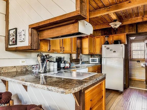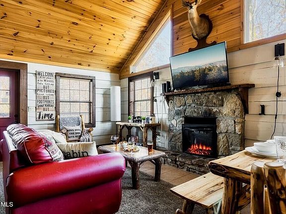 Check out this beautiful Cabin in the coveted Sky Harbor community! Step inside and find a cozy 2 bedroom, 1.5 bath abode that offers all the comforts of modern living. Gather around the open concept living and dining room complete with fireplace; this inviting space is ideal for entertaining! The main floor features a private bedroom with queen-sized bed and full bath, perfect for overnight guests or extended family members. Upstairs you'll discover a master loft with king-sized bed, whirlpool tub and half bath - just right for some restful relaxation after busy days out exploring the area's attractions. Enjoy stunning views of nature while relaxing in your bubbling hot tub or rocking away on one of two spacious decks - either way you're sure to take in some unforgettable sunsets! This CABIN IS A TOP EARNER and has something for everyone - don't miss out on making it yours today! Drone Photography used!