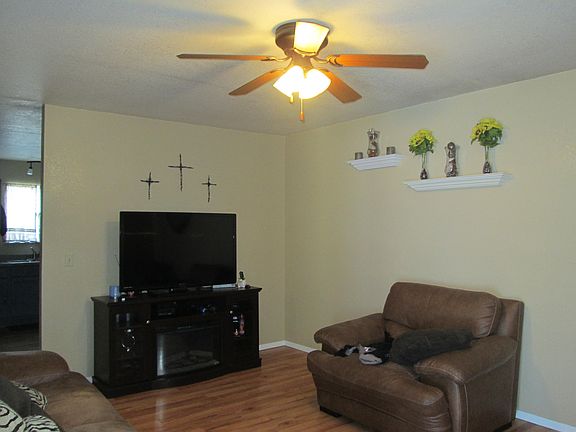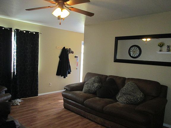 Ranch one level 3 BD 1 BA, built in 1996 in a great location, nice fenced back yard that borders private property. Well kept and also has a garage. New roof, gutters. New flooring in bedrooms. New Refrigerator in November 21. Nice mature tree in front yard with well-kept lawn and an apple tree in the back yard. Very nice starter home. A must see gem that is cute, functional and move-in ready that is all one level. Very private and quiet place to call your new home. Close to downtown, the rec center, baseball field, skate park and pool. Good price for a solid home. Don't pass this one by. See it today before it is gone!