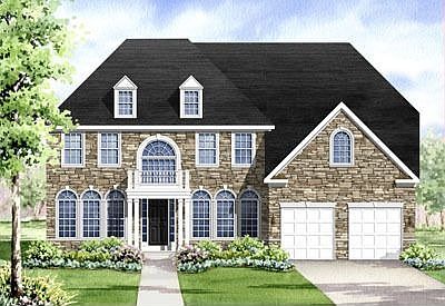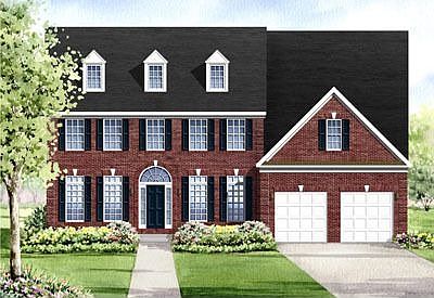 This Mid-atlantic floorplan features 4 bedrooms, 2.5 baths, an airy two-story foyer and family room, a rear library on the first floor, a second-floor laundry room, a hall bath on the second-floor and an owners suite with super bath and his-and-her walk-in closets.