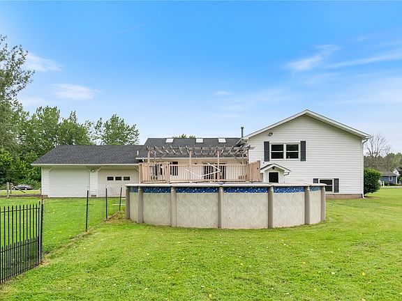 Need some SPACE, with a possible IN LAW situation? You’ll find that in this FULLY REMODELED, split style home on a rural road in Ontario, Wayne County NY even has a FULLY STOCKED POND! The finished lower level has two bedrooms, a FULL bathroom and even a refrigerator where there is plenty of room for a mini kitchen! Maybe make a teen space, a gym or a recreational room! On the main floor the HUGE kitchen (with a breakfast bar!) cathedral ceiling, sky lights, the open floor plan and the large windows allow for so much LIGHT! Upstairs you’ll find three more bedrooms and the PRIMARY has its own FULL BATH! A walk in closet coupled with custom open shelving and a cubby area give you so much STORAGE! There’s a pool right off the rear deck too! This property is situated on 2+ acres with the possibility of more if you’d like! Showings start 6/19 at 9 am and offers reviewed after 6/24 at 5pm.