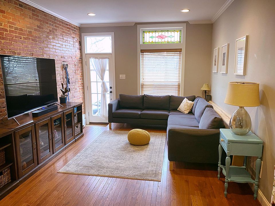 This modern and meticulously kept home sits facing Latrobe Park as if the park is your front yard. Walk into the living room and admire the open design. The dining area sits just before the kitchen. Off of the back of the kitchen you find a hall with a half bathroom and custom shelving for storage. There is a fenced in patio off of the back of the home as well with a quiet large alley that backs right up to Frances Scott Key Elementary School. The basement is fully finished with a spare and spacious storage room and washer dryer. Travel the wide stair case to the top level to find a sky light that gives tons of natural light and two bedrooms with two full bathrooms. This home is within a 2 minute drive to the 95 exit and sits only 5 minutes away from the Harris Teeter shopping center, Merritt Gym, and South Side shopping center. Play soccer on the astro turf at Latrobe Park or stroll down to the Under Armor pier to catch the water taxi to Fells Point or Canton. Tenant responsible for water, gas, and electrical. Tenant must carry renters insurance.