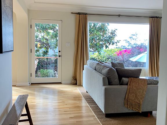 Ocean view from both levels. Gorgeous home with hardwood floors throughout, French doors, plaster walls. New Waterworks 2nd floor bathrooms. Del Mar "sweet spot" - easy walk to village and beach. Large garage with storage rafters and plenty of on-site parking. Downstairs bedroom and bath. Kitchen recently renovated. Available furnished for $14,500/mo. Utilities to be paid by lessee.