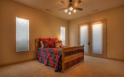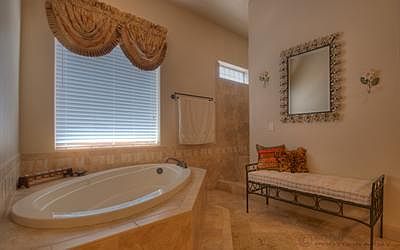 Incredible red rock views from this custom rambler with interior rock and tile floors. Custom glazed staggered cabinets with granite countertops and stainless steel appliances. Built in entertainment center with gas fireplace. High ceilings. Large covered patio. Extensive rod iron fencing.