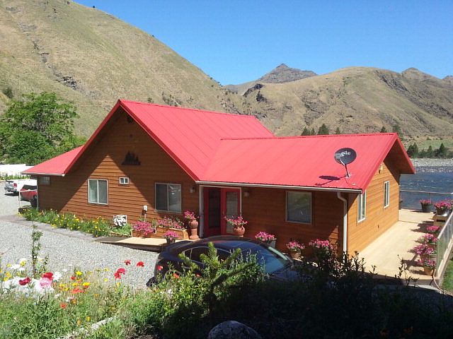 HUGE REDUCTION!!Dreams do come true!Imagine owning this 1,500sf single level 3 bd,2 bath home right on the Wild and Scenic Salmon River!Beautiful 1,501 sf wood deck stretches the length of the home. Cast your pole from the deck into the fishing hole below,relax around the round stone gas fireplace.Wood railing on deck includes glass inserts for breeze free dining.Heavy insulation in home keeps sound barrier from highway noise, amazingly quiet. Panoramic views of the river and mountains from ceiling to floor windows with vaulted ceilings,broken edge traventine flooring. Large open floor plan,lg. laundry room. Guys will love the 30x34 over-sized high ceiling shop/garage. Yes!It even has a bathroom!Large windows with panoramic view of the river from your work bench. Close to town.