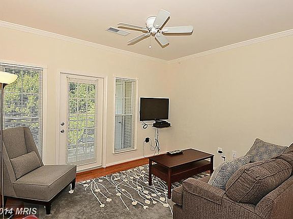 Beautiful 2BR 2BA condo with wood floors. Kitchen with 42" cabinets, granite ctops, stainless steel appl pantry. Master BR has large walk-in closet and bathroom. Second BR has wall of closets. Full-size washer and dryer. Security to enter building with carpeted interior stairs. Condo on 3rd floor. Private deck faces rear and trees. Close to shopping, restaurant, parks, trails, metro. An A+!