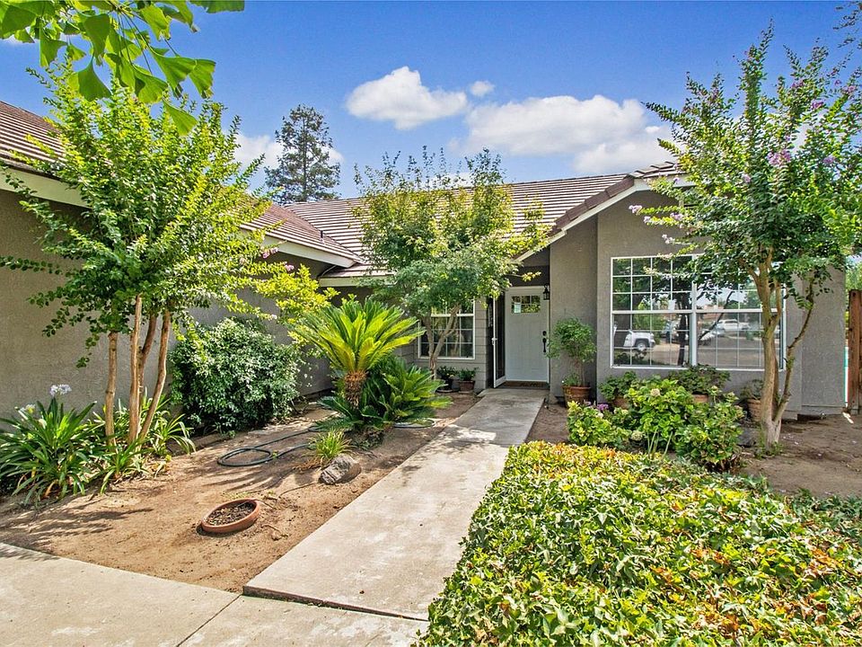 This is the home you have been waiting for in North Dinuba, large corner lot, Swimming pool / Spa, two patio areas, garden and fruit trees (lemon, orange, grapefruit, peach, pomegranate, apple and lime). Upgraded custom kitchen, granite counters, two sinks, pantry, appliances, custom cabinets with top doors lighted with glass. 5 bedrooms, 2 bathrooms, both updated. 2 bedrooms are set up as private office (perfect for working from home). Beautiful OAK hardwood floors in living areas. Master Suite with vaulted ceilings. See Video walk through and attached list of upgrades.