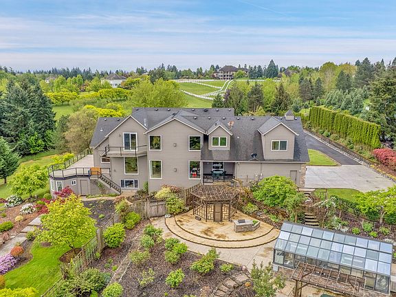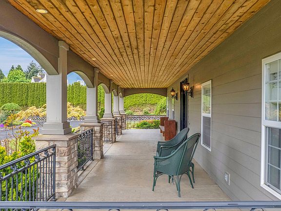 Experience the pinnacle of Pacific Northwest living in this magnificent custom craftsman home, situated within the prestigious estate neighborhood of Rolling Hills in Ridgefield, Washington. Spanning over 6000 square feet, this exceptional residence offers an unparalleled blend of architectural elegance and serene privacy on a sprawling, manicured six-acre estate.Step inside and be captivated by soaring ceilings that amplify the sense of space and light throughout. Exquisite custom woodwork details add a touch of timeless artistry to every room. This thoughtfully designed home boasts not just one, but two luxurious owner's suites, one on each level, offering flexibility and unparalleled comfort. Additionally, a private guest room with its own exterior entrance ensures exceptional convenience and privacy for visitors.The heart of the home is a chef-inspired kitchen, featuring upper-end appliances, sleek granite countertops, and custom cabinetry that offers both beauty and functionality. Elegant travertine floors flow seamlessly into the main level living areas, creating an inviting space for gatherings. From the dining area, step out onto a wonderful, covered patio, perfect for al fresco dining and enjoying the tranquility of your private surroundings.Outside, the meticulously maintained six-acre grounds are a true oasis. Imagine strolling through manicured lawns, surrounded by endless vibrant flowerbeds bursting with color, and enjoying the taste of fresh fruit from your own mature fruit trees. This incredibly private setting is further enhanced by breathtaking territorial and mountain views, offering a stunning backdrop to your everyday life.