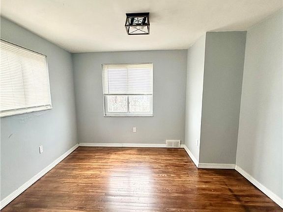 Discover comfort and style at 1516 Pleasantview Drive, Monroeville, PA. This 3-bed, 1.5-bath welcomes you with a well-lit living room, brick accent wall, and hardwood floors throughout. The kitchen, with stainless steel appliances and white cabinets, complements the perfect dining room for family gatherings. Convenient half bath and a spacious bedroom on the first floor. Upstairs, a full bath and two well-sized bedrooms await, each with ample closet space. The basement offers a washer and dryer for added convenience. Step outside to a fenced backyard with kitchen access, an attached garage, and a driveway, completing this ideal home for comfortable and stylish living.