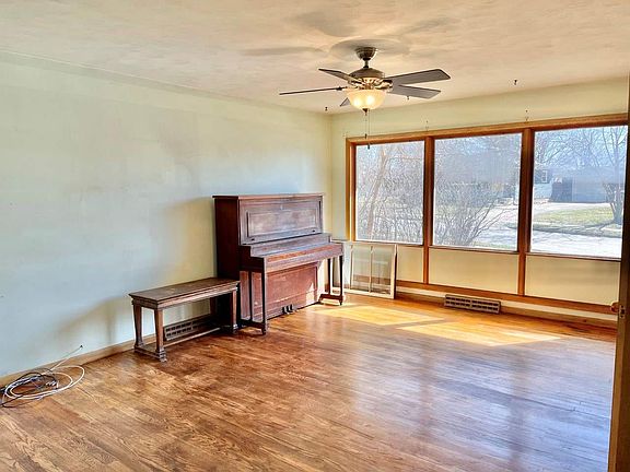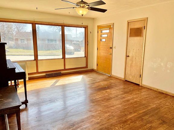 3 Bedroom midcentury home with wood floors throughout the main level with a large front window to let in the afternoon sun. Large kitchen with ample dining area space for table and chairs. Front porch is able to accommodate chairs for relaxing under the front porch awning. Built in cabinets in the main level bathroom for extra storage. Lower level is plumbed and ready for your finishes. Oversized 2 car detached garage. Property is being sold as is.