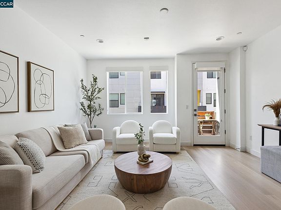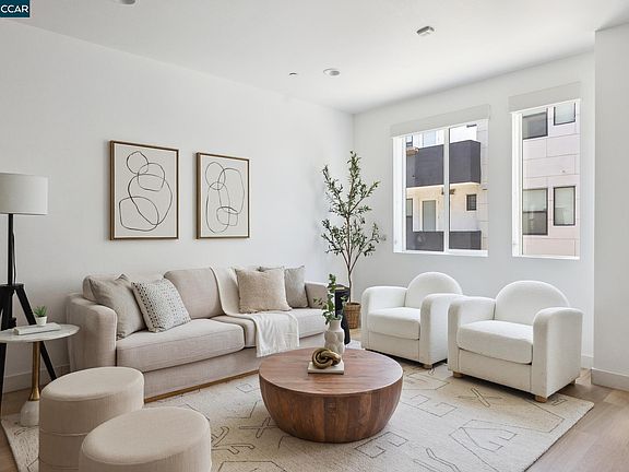Experience contemporary living in this house-like 2 bed, 2.5 bath plus bonus space condo, built in 2018 and designed for both luxury and convenience. With high ceilings and abundant natural light, the open floor plan connects the living room, dining area, kitchen and half bath, making it ideal for entertaining. The kitchen is equipped with Bosch stainless steel appliances and generous storage space. Upstairs, two bedrooms each feature en-suite bathrooms. A laundry closet equipped with washer and dryer sits on the same floor. A versatile bonus space downstairs is ideal for a home office, guest room or personal gym. Modern amenities include solar panel, Nest thermostat, central AC/heat, dual pane windows, recessed lighting, and keyless entry. The 2-car garage offers side-by-side parking and is pre-wired for EV charging. With views of a community parklet, this home exemplifies serene urban living. Conveniently located just minutes from the Bay Bridge Toll Booth, with a 7-minute BART ride into San Francisco and 5 minutes to Downtown Oakland, city living just got easier. Nearby access to freeways and AC transit. Near shops, restaurants, Grand Ave, Downtown, Uptown, Lake Merritt & Jack London Square. This home awaits you!