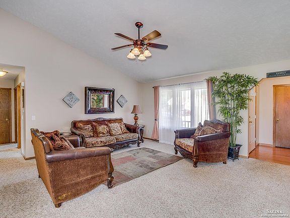 Walk in & enjoy this 5 Bedroom, 3 Bath home with large double car garage conveniently located on a quiet street near Salina's Levee trail. Relax with the newspaper over coffee on the covered front porch. Entering, you'll notice the Living Room's open floor plan that keeps everyone in touch yet offers great flow for entertaining. A large covered deck with access from the Master Bedroom or Kitchen Living area invites all to outdoor fun throughout the landscaped privacy fenced backyard. Spacious main floor Laundry with extra storage. Downstairs features 2 bedrooms, another bathroom, and theater/rec room.
