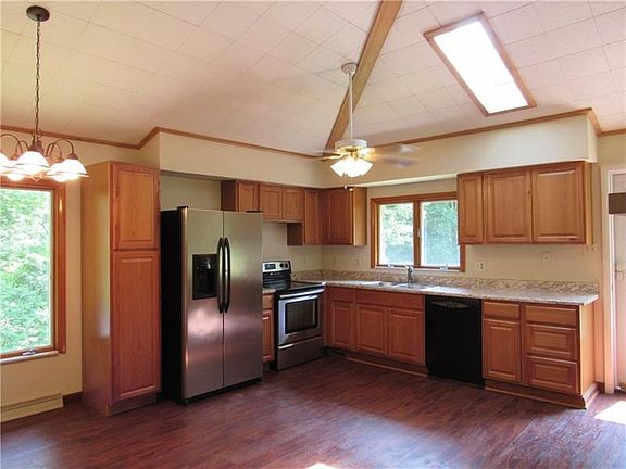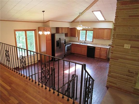 All Brick Multi Level, 3-Bed Rm, 2-Car Garage Home on over 2 Acres in the highly sought after South Side School District. Very well maintained home w/Open Floor Plan. Gleaming Hardwood Floors, Vaulted Ceiling, and the Stacked Stone Fireplace are just some of the highlights of this lovely property. Newer luxury vinyl flooring in the fully equipped Oak Kitchen and Dining Room Combo area. Deck off side door from the kitchen for summer entertaining. Light and Bright Living Room w/Stacked Stone Gas Log Fireplace. A few steps up to the level entry and Bedroom areas, each with gleaming hardwood floors and ceiling fans. Finished lower level includes a carpeted game room w/Stacked Stone Fireplace w/wood burner insert which could heat the entire home with the open floor plan, walkout to private backyard and convenient full bath. Private wooded backyard. NEW ROOF & GUTTERS just completed in May 2019.