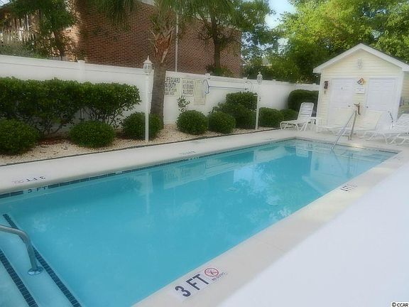 GREAT LOCATION EAST OF 17!! This unit features 4 bedrooms, 3 full baths, tile flooring in kitchen and all baths, corian counters & breakfast bar in kitchen, 9 ft ceilings in the living room, dining area and kitchen w/ crown molding, large screened porch overlooking the community pool, 2 front porches (off Master suite & first level guest), under building storage room perfect for parking your golf cart, and an under stairs closet perfect for storing your beach gear. Located only blocks to the ocean, close to all that the North Myrtle Beach area has to offer including shopping, dining, and entertainment. This is a must see unit located in a complex with only 6 units total.