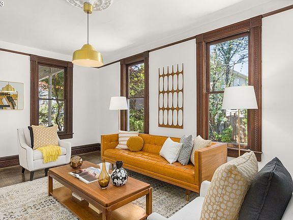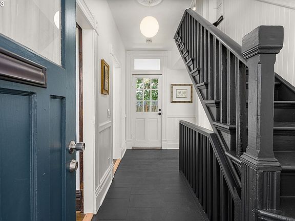 Built in 1883, the historic Hemmrich Home has been designer restored and renovated insuring both historic details and modern conveniences. This charming Victorian abounds with high quality materials & stylish finishes that are both sophisticated and welcoming. Nestled on one of Brooklyn's most charming streets between historic cottages and situated on a corner lot, privacy and building options are at a premium. The Hemmrich home offers tons of natural light, original wood floors, period millwork and formal open living and dining rooms with soaring ceiling and period details. Updated kitchen including butler's pantry with custom stainless counter, 2nd sink and tons of storage. Upper level includes 3 bedrooms and a spacious 2nd full bath. Recently updated lower level features multiuse space options with outside access, polished concrete flooring, water-proofing and an open airy feel. Outside a lush and private patio awaits featuring steel planters, a blackstone patio, native landscaping- and a side yard where potential abounds. Carport has a Level 2 EV charger. All blocks from the bike path, Max, easy access to all the action in Sellwood as well as Division/Clinton corridor. Quick commute to Reed/OHSU and downtown.Walk score of 94, Bike score of 100! [Home Energy Score = 1. HES Report at https://rpt.greenbuildingregistry.com/hes/OR10037233]