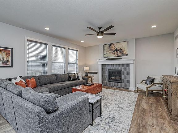 Don't wait for new construction, this home is ready for you! This Rutherford - Farmhouse has a open concept living area and kitchen. This kitchen features white cabinets, quartz counter tops, an island that doubles as a breakfast bar, pantry, drink station, and stainless steel appliances. Living area with ceramic tile around fireplace and lots of natural light. Beautiful backyard with brand new fence, stamped concrete patio and sprinkler system! Upstairs you will find a fantastic primary suite with luxury vinyl plank floors, tray ceiling, and ensuite with dual sinks, large closet, and shower. Loft area upstairs makes a great office or additional living space. Second floor laundry! Additional bedrooms share bathroom with tiled shower and bath and dual sinks. Spacious 3 car garage. Basement is plumbed and ready for your finishing touches. Lots of upgrades including: Christmas light outlets, Hard surface flooring upstairs, garage key pad, stamped concrete patio, window blinds, fence, new additional lighting, and upgraded dishwasher.