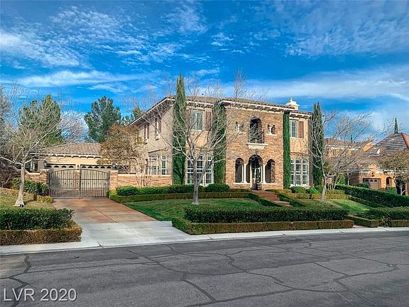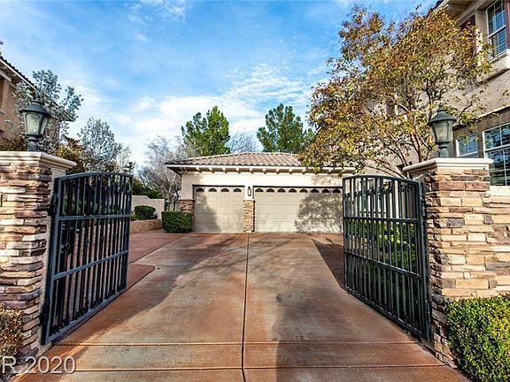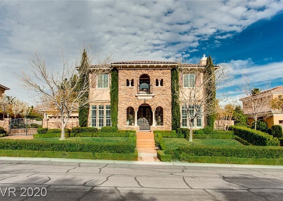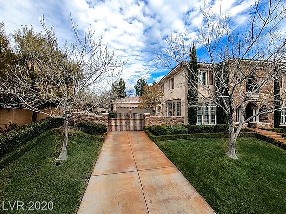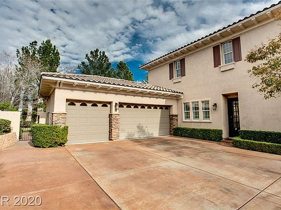 A TREASURE in THE VINEYARDS of Summerlin! This 4BR/3.5BA home is eye-catching at every turn....from curb appeal to the stacked stone doorway accents to the grand staircase to the lush landscaping....this home is AMAZING! Grand entrance w Gourmet Kitchen, FR, formal LR & DR, Office, Master BR Spa Suite & 3 additional large bedrooms w baths. Two tone paint thru-out, tile in main areas w carpet in BRs. Covered patio, BI-BBQ and lush landscape...WOW!