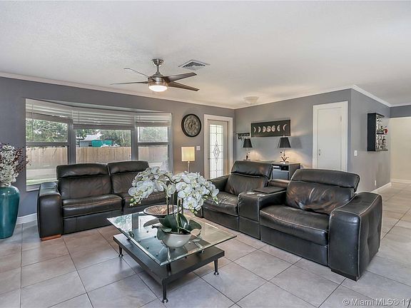 Fantastic location of a beautiful DREAM home 3 bed/2 bath on a quiet corner lot located in Hollywood Lakes. Office/den that can be used as 4th bedroom. This home has an open floor plan. All bedrooms come w/ custom closets. All windows, doors &garage are hurricane impact. Spacious open living & dining areas w/ a large kitchen & large island w/ solid surface quartz countertops. Tile roof & circular driveway in front of the house &a large driveway w/ alley access in the rear of the property. French doors lead to a covered patio & cabana bath. Live outdoors with a free-flowing sparkling pool with built-in spa. Lush & beautiful backyard w/ TREX fenced yard. A salt system pool & room for an oversized boat or room for additional entertaining outside.