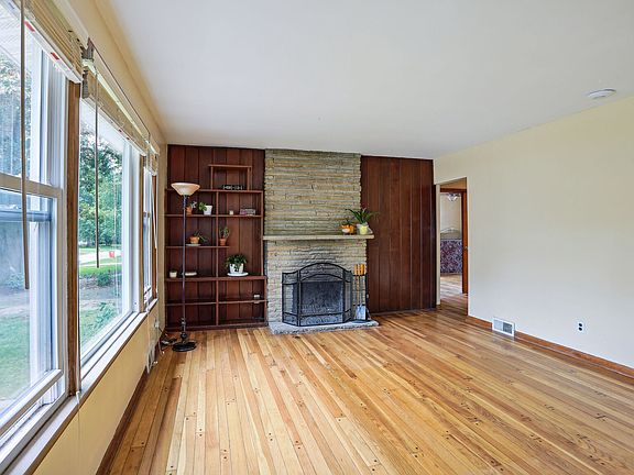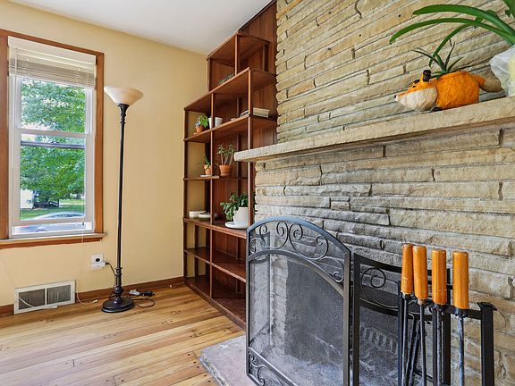You'll love the location and feel of this charming 3 bedroom, 1 1/2 bath ranch home! Located in the middle of town on Sheridan Rd this property features low maintenance vinyl siding, a fenced back yard, massive patio and a huge garage. And that's just the outside! Inside you'll find gleaming hardwood floors and a striking stone fireplace front and mantle. This room offers plenty of space for a dining table as well. The kitchen is galley style with plenty of cabinets and counter space. In the back of the home is the family room and bath addition. This space includes cathedral ceilings and a wall of built-in cabinetry. 3 bedrooms each include wood floors and huge, cedar-lined closets. The third bedroom would work as a great home office or study with built-in shelves. Both bathrooms have been fully renovated with new tile flooring, vanities, fixtures plus a new tub/shower surround. Downstairs you'll find a large basement with a finished family room, plenty of storage and the washer and dryer can stay. Updates/Upgrades: Sump pump 2022, roof 2011, gutters and gutter guards 2022, washer and dryer 2022 and this home will have a new roof installed in 2023!
