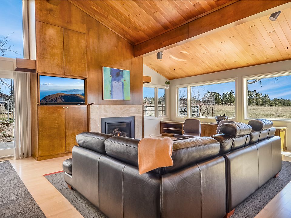 Breathtaking Mt. Evans views and acres of adjoining open space! Light and bright contemporary mountain home. The updated kitchen opens up to a spacious great room with a fireplace and the best seat in the house for gazing at Mt. Evans. The great room opens to a separate dining room adding grandeur to your next dinner party and the dining room opens to a living room surrounded by large picture windows where you can further enjoy the spectacular views. The next level features two bedrooms plus a third, non conforming bedroom, a full bath while the upper level features a large master suite. This low-maintenance home has been meticulously maintained and features a newer roof and Hardie Board siding. From Genesee, you can be in downtown Denver in less than 25 minutes and in Summit County in less than an hour. Genesee also offers 11 miles of hiking trails, 1200 acres of open space, two community pools, four tennis courts, award-winning schools and many organized social groups.