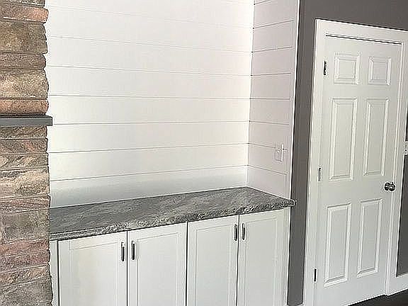 Hard-to-find, completely remodeled, spacious 5-bedroom, 3-bathroom home. Three brand new, modern bathrooms. Main bath has dual sink vanity to accommodate large family. Completely brand new kitchen offers modern lighting, new white cabinets, HD countertops, beautiful stainless appliances, glass mosaic backsplash, and huge eat-in area with fireplace and custom built-in serving hutch located just in front of the sliding glass door, offering a beautiful dining view of the large and lush yard. The 5 bedrooms feature spacious closets and refinished hardwood. The main floor features new bamboo hardwood and new carpet. Exterior of the house is also completely renovated with new siding, windows, soffit, lighting and entry doors. Backyard is beautiful! It is large, flat,and backs up to Duck Creek BUT IS NOT in a flood plain, making for a gorgeous private retreat to sit by the fire and enjoy the natural waterfall in the creek while the kids play. Nearby schools are within walking distance along with a park and access to bike bath just down the street. This home has 2 central a/c units for zoned cooling and ultra quiet, efficient radiant heat. The walkout basement is finished with electrical, heating and a second fireplace and has a massive storage area with built in shelving. Garage is a large 2-car attached with new opener and built-in shelving.