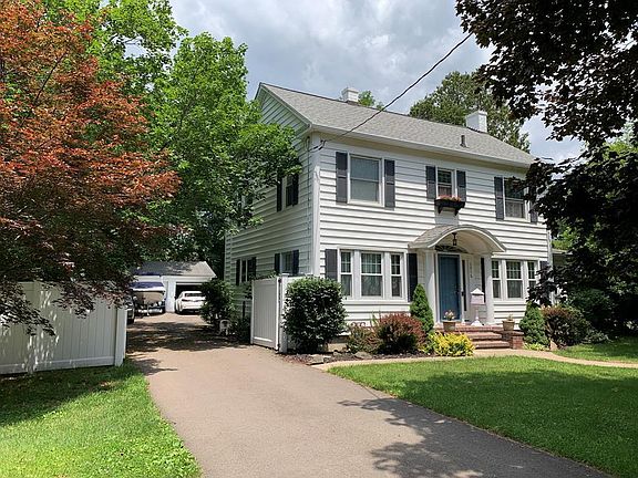 Beautifully maintained center hall colonial featuring welcoming entry foyer, cozy living room w/two-sided gas fireplace, den, dining room w/pretty built-in cabinet, & modern kitchen w/quartz counters & center island. Spacious bedrooms w/nice closets, clean lower level with great potential for game/exercise room, etc., & large walk-up attic. Vinyl windows, enclosed summer porch, stone patio with firepit, privacy fencing, 10-year old roof, resurfaced driveway, & 2-car garage. Close to Town pool, Town Hall w/pickleball courts, and Town Library. All appliances convey and more. Look, LOVE, Live!