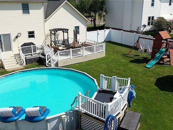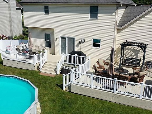 This stunning home is tucked away in a beautiful neighborhood in Lake LSD. This 2-story home offers over 2600 sq. ft. of bright, airy, and spacious living space. An inviting foyer leads to a dining room (left) with a tray ceiling and a great room (right). The great room features a floor-to-ceiling brick fireplace, large windows and is open to the eat-in kitchen. The kitchen offers granite countertops, a tile backsplash, stainless steel appliances, a breakfast bar, and a dining area with sliders to the deck. Along with an oversized deck, the private backyard also has an above-ground pool and a play set making it the perfect place for entertaining family and friends this summer. Finishing the first floor is a guest bedroom, a full bath, and a laundry room with a utility sink. 3 large bedrooms and two full baths, including the master suite, are on the upper level. The master suite offers a walk-in closet (5x8), an abundance of natural light, and a private master bath with a soaking tub, and a walk-in shower. A mother-in-law suite is located in the finished basement with a kitchenette, a family room, a bedroom with a large walk-in closet, a full bath, and an office with additional storage space. The attached two-car garage completes the package. Updates Include new roof 23, quartz countertops, stainless steel appliances, tile flooring kitchen & halls, privacy fence, above-ground pool, upgraded master bath, house water filtration system recharged in 2022. Schedule a showing today!