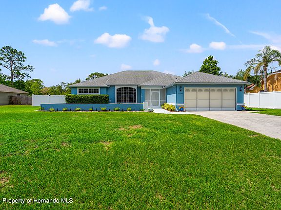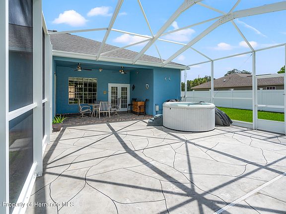 Discover this gem featuring a spacious, fenced, and cleared lot with paved streets, and No HOA No CDD. This move-in-ready home offers 3 bedrooms, 2 bathrooms, and a large enclosed screened patio with a jacuzzi. The split bedroom floor plan provides privacy. The kitchen boasts wood cabinets, granite countertops, breakfast bar, opens to the breakfast area and family room; all appliances new on 2022. Large formal living and dining areas. Enjoy new luxury vinyl plank floors in the main living areas, a new AC on 2023 and new front double doors. Master bedroom with french doors to patio; master bath with his and hers vanities, garden tub, separated shower, wood cabinets. Additional features include a shed with electricity, sprinkler system, tinted windows, central vacuum, and a laundry room with a sink. Back fence with wide doors offer easy access for your RV or big toys; shed with electricity. Close to shopping, restaurants and highways. This home is in great condition and ready for you to move in. Don't miss out on this perfect blend of comfort and convenience on almost one acre!