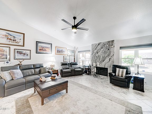 WOW! Beautifully upgraded 3 bed/2bath home with additional Home Office/Den. Remodeled kitchen with Island, Custom white cabinetry dressed in Black pulls, Gorgeous Granite slab countertops, Stainless undermount sink, Chefs delight 5 burner gas stove, glass backsplash, DD fridge & large pantry. Wonderful split floorplan with Soaring vaulted ceilings, all Ceramic tile flooring, custom Granite inlay fireplace, all New doors & Anderson windows(2017), New Roof (2018) & New AC(2021)! Upgraded Master suite with new cabinetry, dual sinks, amazing walk-in shower with clear glass surrounds & walk-in closet with built-ins. Easy living low maintenance Backyard with huge full length covered patio, stamped concrete flooring design with walking path to garage and RV gate! Garage cabinets and epoxy garage floor! Property is close to the 101 frwy, restaurants, retail, entertainment and Fantastic golf courses!