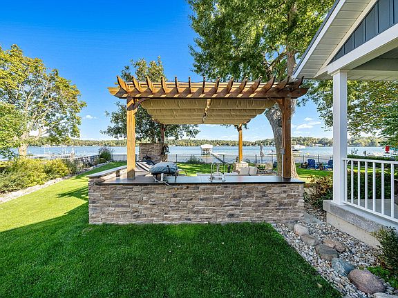 PERFECT-THERE'S NO OTHER WAY TO DESCRIBE THIS FLAWLESS BIRCH LAKE HOME. THIS 4 BEDROOM, 3 BATH SITS ON ALMOST 100' OF PRIME LAKE FRONTAGE WITH GORGEOUS VIEWS. Inside, the main floor features a PRIMARY LAKESIDE BEDROOM WITH FULL BATH. A main floor laundry, kitchen with island seating, granite counters and stainless steel appliances. The living room has luxury planked flooring, fireplace and leads out to a sitting area outside with an overhang. The upstairs has a sitting room, full bath and three large bedrooms. THE FENCED-IN LAKESIDE YARD IS ONE OF BEAUTY, featuring a GAZEBO with OUTSIDE KITCHEN with sink, grill and fridge, plus a FIREPLACE. There is another patio down by the lake that seats 4, plus a FIRESIDE PIT. This custom built home gestures a whole house generator and was built over helical piers for increased and strength and stability.