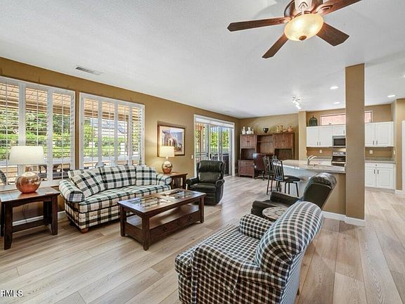 WOW! This Fully Furnished Beauty has it all! Walk into an ever expansive great room with a beautiful kitchen overlooking to living space. Large Dining Table fits 6 for family dinners! Master Suite is fully stocked with a KING sized bed, dual Vanities and walkin shower! Backyard is covered by a large patio, as private as it gets!!