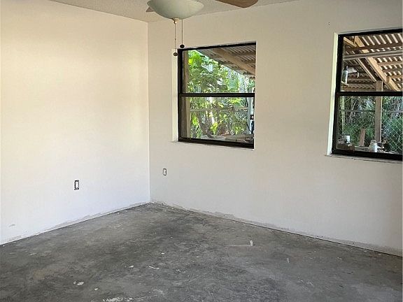 Welcome to this professionally remediated home in a prime Fort Myers location. This property boasts a new roof, a freshly painted interior in a neutral palette, and a completed drywall installation. This luminous home is flooded with natural light, thanks to an abundance of windows that effortlessly invite the sunshine to illuminate every corner, creating a bright and airy atmosphere. You can customize the space with your choice of new floors and kitchen to make it your dream home.