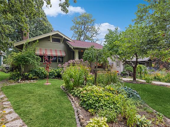 Rare opportunity to own this 1923 Craftsman Airplane Bungalow in the Waveland Park neighborhood of Des Moines. Included in the American Bungalow Registry. Enjoy the original oak woodwork and built ins in this fine Craftsman home on a wonderful, treed Des Moines street. Character abounds. Three bedrooms plus office (possible fourth) and TWO bath areas (plus additional basic facilities in the basement). Newer upgrades include: roof, A/C, heat, water heater, dishwasher, many windows, interior and exterior paint, IKEA kitchen features, and large deck with pergola. Very large living room with fireplace and built ins / leaded glass. Separate dining room with classic French doors and beautiful mirrored buffet. Oversized two car garage and very large, useable basement with several areas (Storage? Large laundry? Workshop? Wine cellar?) Calming covered front porch looks out to noticeable landscaping and quiet street. Upstairs Master, once a sunroom, has all new windows, an added clothing unit (armoire style plus closet) and its own shower bath. Enjoy.