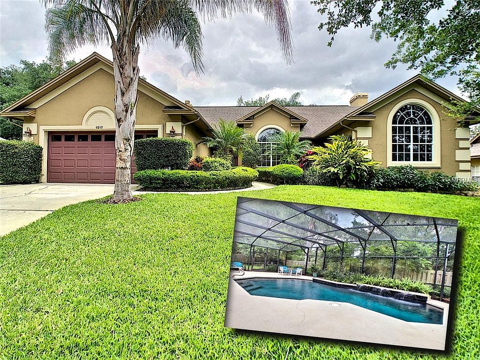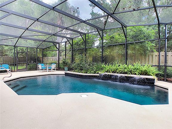 Truly amazing pool home with exceptional detailed finishes in popular custom home community. Large Granite Center Island kitchen, stainless steel appliances including, range, microwave, side/side fridge and Bosch extra quiet dishwasher. Extensive high quality tile flooring throughout! Coffered/Tray ceilings, crown moldings and wainscoting. Large Florida room is connected to central A/C is not included in Square foot... (With Florida room, the a/c square footage is 2,520). Step into Summer with a Soothing tropical in-ground screened pool oasis with fountain sprayers. Wait until you see the dramatic master bedroom suite with double sided fireplace shared between your therapeutic jetted spa and bedroom! Incredible custom closet with built-in vanity, drawers and shelving. High vaulted ceiling in great room opens to kitchen features a wood burning fireplace focal point with marble surround. Large Dining Room features built-in wet bar with granite and french doors leading to Florida Room & Pool. ***4th bedroom is a den off kitchen with double French Doors, not currently set up as a bedroom but can be converted and perfect for those who want that extra bedroom for study/den or playroom. Preventative Termite Bond in place. **Intercom system sold As-Is** With a shortage of pool homes in this area, quick action is a must. Delay will bring disappointment. Call now.