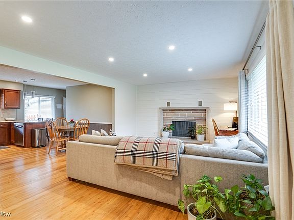 Welcome to this beautifully updated ranch-style home offering two bedrooms, two full baths, and finished spaces in the basement. Located on a large 1.11-acre lot in a sought-after school district, this home is move-in ready. Step inside to find a light-filled living room featuring warm bamboo flooring, a cozy wood-burning fireplace, can lighting, and large windows that bring the outdoors in. The kitchen boasts modern updates with granite countertops, stainless steel appliances, and a double sink—plus a eat-in area for dining. The main level includes two spacious bedrooms. Plus, a full bathroom with plank tile flooring, a tiled tub/shower combo, and a large single vanity with storage. One of the standout features of this home is the sunroom at the back, complete with bamboo flooring, a wood burner, baseboard heat, and a slider to the patio. Need more space? The finished basement offers a full bath, a versatile bonus room that could easily serve as a potential third bedroom or office space, and a nicely sized rec room. Outside, you'll find a two-car attached garage, a shed for storage, and a patio area surrounded by a fence. Plus, the home is close to Belden Village and highways. Don't miss your chance to see this wonderful home; schedule your showing today!
