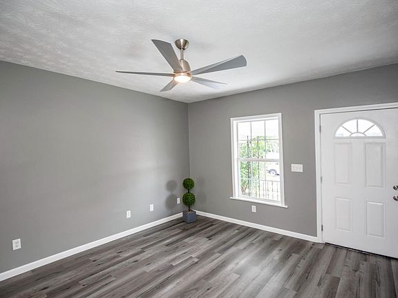 Gorgeous 2 bedroom home fully and beautifully renovated and updated with all new LVP flooring, wall/ceiling paint, light fixtures/ceiling fans, electric, new kitchen cabinets/counter top, new siding, roof, hot water heater. New windows/gutters, interior and exterior doors. Basement partially finished w/ laundry room. Inviting covered front porch.