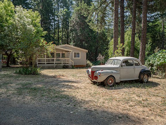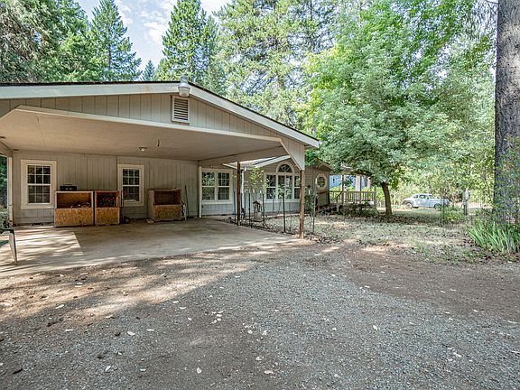 SELLER IS MOTIVATED Beautiful, gated & fenced, 5-acre property with a Huge 3000 sq.ft. Shop/Garage & charming home. Privacy abounds on this flat & usable parcel, set way off the main road. You will be delighted with the whimsical walking path around the whole 5 acres, fruit trees & fenced gardens to help you live off the land. Some of the trees include apples, cherries, figs, peaches, pears, persimmon, plums, walnut, hazelnut, grapes, rosemary, redwood, & sequoia. When you walk in the home you find a large living & dining room with vaulted ceiling. The kitchen is quite large with tons of storage & a good-sized pantry. Attached to the kitchen is a great breakfast nook with several large windows. Off the dining room you will find a great office with built in desk, this room could also be a 3rd bedroom. (check with county for uses) as you walk down the hall you will find a guest bedroom with walk in closet & then huge primary bedroom with en suite. The massive Shop inclds lrge compressor