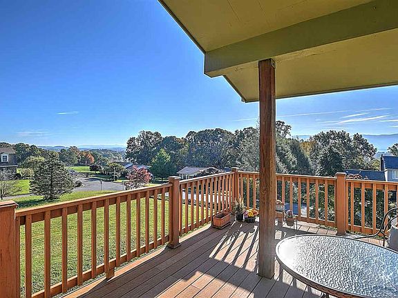 Gorgeous mountain views from this hilltop retreat. Lots of new decking and porches to enjoy the unbelievable vistas. Lots of updates through the years with the roof, window, heat pump (2016), water heater (2016) and more. Kitchen updates include quartz countertops and tile back splash. granite counters in the bath. Large basement family room with stone fireplace. Basement could have a fourth bedroom or office. Private screened in porch. A hard to find gem these days!