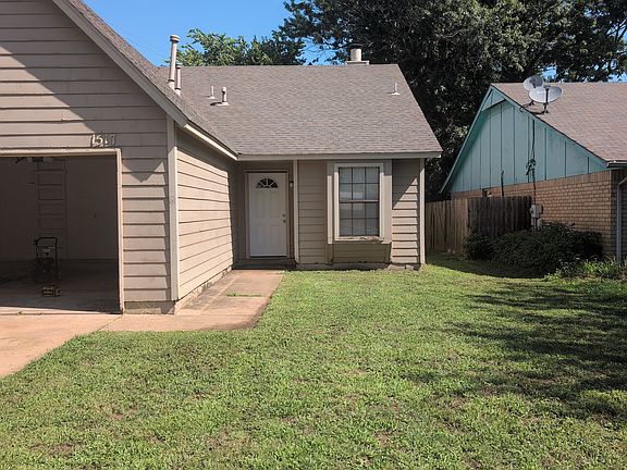 House is in a beautiful neighborhood in Jenks, on a cul-de-sac, right behind a Jenks police station. There's a large fenced-in back yard, washer/dryer hook-up. There's a huge living room with a fireplace. Kitchen has a gas stove. Dining room has a window with bench. Two-car garage. Master bedroom with ensuite bath; walk-in closet. Built-in shelves in all closets. Minutes away from Riverside trail.