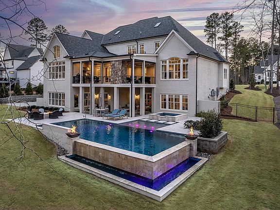 Nestled amongst the majestic trees of Avalaire, this alluring all brick abode awaits. Grandeur greets guests upon entering - w/ a study & separate dining room culminating in an awe-inspiring family area complete with soaring ceilings & floor to ceiling stone fireplace + designer kitchen w/ Subzero/Wolf appliances. Offering luxurious comfort on the main level resides a master suite + sitting room w/ direct access to the screen porch; 4 additional Large bedrooms + bonus await upstairs alongside elevator access for ease of movement to all 3 floors. The delightful basement reveals hidden luxuries: workout room/wine cellar offering unique respite alongside colossal entertainment space including bar & an incredible theater setup! Outside sanctuary features infinity edge pool w/ fire bowls, hot tub & fire pit + sport court with large fenced yard sure to please any outdoor enthusiast!