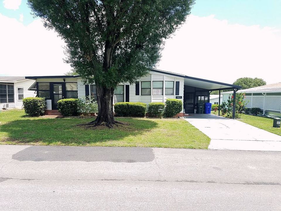 Located in Senior Park with Monthly Lot Rent of $666. NICE 2 BEDROOM, 2 BATHROOM PALM HARBOR TURNKEY HOME. TWO BAY WINDOWS BRING PLENTY OF SUNSHINE INTO THE HOME. WANT TO ENJOY THE WEATHER? YOU CAN CHOOSE THE SUN ROOM OR SCREEN LANAI TO RELAX OR ENTERTAIN! LARGE SHED WITH PLENTY OF STORAGE. MOVE IN READY! **2013 A/C, 2012 ROOF. LOCATED IN FOXWOOD VILLAGE, NESTLED IN GENTLY ROLLING HILLS. BEAUTIFUL FOXWOOD VILLAGE IS A 55+ PARK (80/20). 2 PETS UNDER 40 POUNDS, 20" AT SPINE, WITH BREED RESTRICTIONS. MOTORCYCLES ARE ALLOWED. FOXWOOD IS LOCATED IN NORTH LAKELAND NEAR SHOPPING AND RESTAURANTS. **$58 Monthly Pass Through Tax. **NO UTILITIES INCLUDED IN LOT RENT. SCREEN LANAI 11 x 12 Great Spot to Enjoy the Weather! Located off the Carport. Furnished with 4 Chairs, 2 End Tables and Console. Breezeway with Door to the Back Yard. Ceiling Fan and Indoor/Outdoor Carpet. KITCHEN 10 x 11 Enter Home into this White Kitchen. Lots of Sunshine from the Bay Window over the Sink! Hot Point Refrigerator, Frigidaire Range with Vent Hood, Kenmore Dishwasher and Microwave. Breakfast Bar with Chair. Pantry. Ceiling Fan and Laminate Flooring. DINING ROOM 8 x 9 Open to the Kitchen and Living Room. Large Window Brings in Plenty of Light. Dining Table with 4 Chairs. Large Built In Hutch with Glass Door Cabinets and Glass Display Shelves. Chandelier. Window Treatments. Laminate Flooring. LIVING ROOM 13.5 x 17.5 Spacious Room with Large Bay Window! Furnished with Sofa, Loveseat, 3 End Tables and 3 Lamps. Chair, Flat Screen TV and Console. Door to Sun Room. Ceiling Fan. Window Treatments. Carpet. SUN ROOM 10 x 14 Enter From the Living Room and from Front of the Home. Furnished with Sofa, Chair, Coffee Table and Bookcase. Room is Vented for A/C. Ceiling Fan with Light. MAIN BATHROOM 4.5 x 7.5 Single Sink Vanity with Mirrored Medicine Cabinet. Tub and Shower Combination. Comfort Height Commode. Skylight. Vinyl Flooring. MASTER BEDROOM 13 x 13.5 Queen Bed Frame Only. Chest of Drawers, Bedside Table and 2 Chairs. 4 x 6.5 Walk In Closet. Ceiling Fan, Window Treatments. Carpet. MASTER BATHROOM 7 x 8.5 Wide Single Sink Vanity with Mirrored Medicine Cabinet. Walk In Shower with Support Bars. Comfort Height Commode. Double Linen Closet. Vinyl Flooring. GUEST BEDROOM 10 x 11 Double Bed, Chest of Drawers, Bedside Table and Lamp. 4.5 x 5 Walk In Closet. Ceiling Fan with Light. Window Treatments. Carpet. LAUNDRY 3 x 5 Located Off the Hallway. Kenmore Washer and Whirlpool Dryer. Cabinets for Storage. STORAGE SHED 8 x 15.5 Located off the Carport. Large Shed with Plenty of Shelving for Storage. Door to Back Yard. ABOUT THE PARK: Foxwood Village Offers A Full Calendar of Social Activities and Clubs for Residents. Amenities include a Large Social Hall with Kitchen, Heated Pool and Jacuzzi & Sauna, Laundry Facilities, Exchange Library, Secure Mailboxes, Fitness Room and Shuffleboard Courts. Outside Storage Area for RVs, Boats and Trailers (Subject to Availability) Close to Lakeland Square Mall & Cinemark Theatre with 18 Theatres, Entertainment, Restaurants, Churches, Doctors, Lakeland Hospital and Beautiful Downtown Lakeland located on Lake Mirror. Information stated in description of home and park is not guaranteed. Responsibility for obtaining current fees, rules & regulations associated with the community/park/home is the Buyer's responsibility. Home sold 'As Is' without warranties or guarantees by seller and/or Snowbird Living. Home and Room sizes are approximate and not guaranteed.
