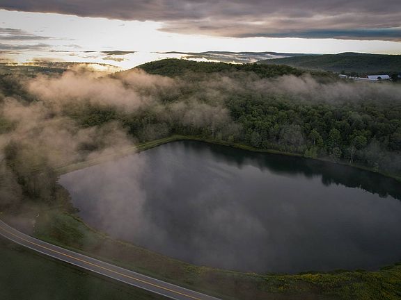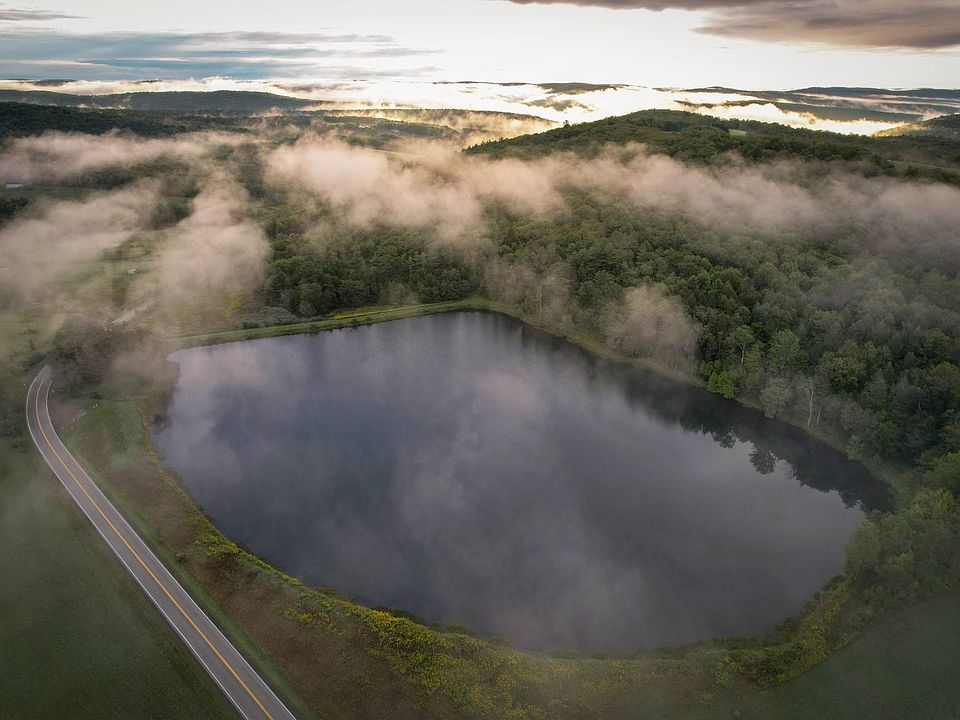 One of a kind! This crown-jewel 10+ acre private lake takes command of the surrounding grounds that are encircled by a regal sense of beauty to unlock unlimited possibilities. Conspiring with the area's mounding topography this stately parcel merges it's level portions and half dome contour in stately view of the property's placid lake. The wooded hillside provides a stadium view of the shimmering lake below and is etched with a series of trails that hem-in its mature timber stand. Well stocked with a diverse mix of hard and soft wood trees, there are a number of potential building sites among the towering weave of oak, maple, hemlock and birch. With beautiful panoramic views to the west and north there is an unimaginable amount of possibilities presented by this one-of-a-kind vacant land tract. This hilltop retreat could be leveraged in a number of ways to suit the needs of both a full time residence, recreational retreat, or even a budding business. Camping, hunting, fishing, riding and other recreational activities are all in play at this natural paradise. Occupying the majority of the bluff adjacent to Hogback Rd, the canvas of this unique tract allows for excellent access to the entire parcel's topography thanks to road frontage on Hogback Rd and Ridge Road and in part to a well-manicured series of trails. It's stated that the lake is well-stocked with a number of fish species and has provided piles of smiles from bent poles for many years. Due to its protected nature the lake has the opportunity to provide a multitude of recreational uses beyond just fishing and could be suitable for various water activities such as kayaks, canoes and possibly small boats. Beaming with diversity, this is a true must-see parcel for anyone seeking to capture some of all of the disparate virtues western New York has to offer. Deer, turkeys waterfowl and other wildlife are abundant in the area and regularly find themselves decorating the countryside. Some utilities are available at the street with power ready to be dropped at any time. Don't let this brooch of the bluff pass you by - contact us today for more information or to schedule a private showing.