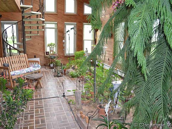 OVER 5700 SQ FT HOME WITH 5 BEDROOMS, 3 1/2 BATHS A 2 CAR ATTACHEC PLUS A 3 CAR DETACHED GARAGE. INDOOR ATRIUM, 3 FIREPLACES! MASTER BEDROOM WITH MASTER BATH. MAIN LEVEL LAUNDRY NEAR THE BEDROOMS. HUGE LIVING ROOM, DININGROOM AND FAMILY ROOM. LOFT FOR STORAGE OR A SITTING ROOM. WALK OUT BASEMENT. DECK OFF THE KITCHEN AND DINING ROOM, SPRINKLER SYSTEM FOR YARD IMMEDIATLEY AROUND THE HOME. BIG 960 SQ FT BARN. 2 - 30 AMP RV HOOKUPS! ONLY MINUTES FROM CHEYENNE.