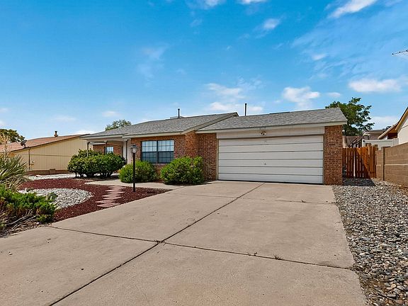 Welcome to this well-maintained 3-bedroom, 1.75-bath home in the sought-after Rivers Edge community. Offering comfort and convenience, this property is ideally situated with easy access to Pat D'Arco Highway. Inside, the inviting open floor plan is perfect for everyday living. The kitchen features a breakfast bar opening into the dining area, a cozy breakfast nook, and views into the living room. The primary suite offers a private bath with an updated shower and generous closet space. Relax on the covered front porch and take in New Mexico's breathtaking Sandia Mtn views and sunrises. Back yard also has a large covered porch. Paid Solar for your utility bill savings.