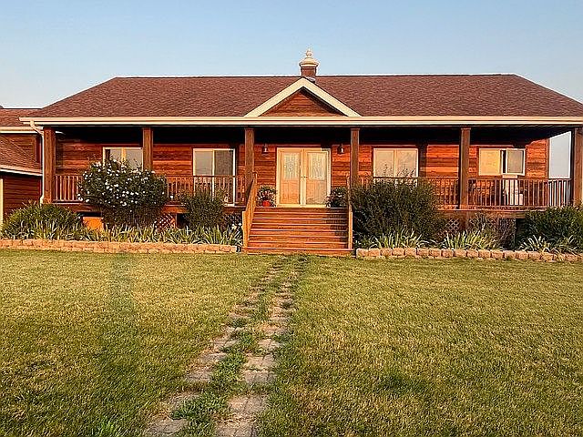 Beautiful cedar-sided county home on 13 acres with a pond and outstanding views. Oversized 2-car garage with full upstairs attic. Home was built according to the principals of natural las (Vastu) and rooms are orientated to give maximum enjoyment. Main floor and garden level apartment with separate entrances. Each floor has 3 bedrooms/2 baths plus meditation room/office. In-floor heat with 4 zones on each floor. 12" thick walls with natural cellulose insulation, low-e argon gas filled windows. The home was built according to the affordable housing association specifications for maximum energy efficiency. Interior materials include all wood cabinets, granite countertops, oak trim, natural linoleum floor, wool carpeting, tile.