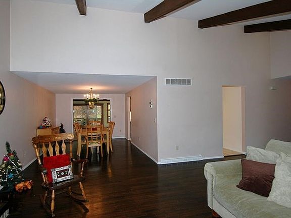 Not your usual split level home! This spacious 4 bedroom & 3 full bath home is situated in Franklin Park. The large living room features cathedral ceilings that are enhanced with decorative beams, a brick fireplace & hardwood floors leading to the dining room. Through the dining area, sits an enormous sunlit family room detailed with a cathedral ceiling & egresses to the large backyard. Back inside, the eat-in kitchen offers plenty of storage & solid oak cabinets. The hardwood floors continue throughout the home & down the hallway to the master bedroom suite with a full bath & large closet. The 3 additional rooms share a full bath. Need more space? The lower level has a large game room complete with a full bath & plenty of storage-perfect for a playroom, home office & more. Great neighborhood with community pool & conveniently located to shopping & dining. New Roof Fall 2016.