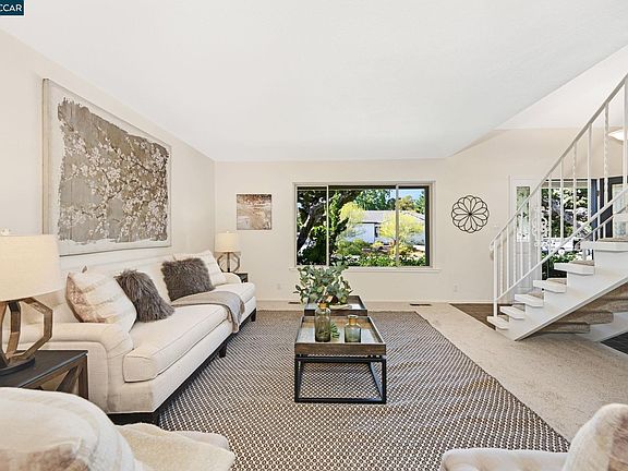 Beautiful 4 bedroom, 2 bath PLUS den near the end of a cul de sac in one of Walnut Creek's highly sought after areas. New (8/2023) paint, flooring, and fixtures gives this home a wonderful updated and refreshed appeal. Beautiful front door entry w leaded glass. Tiled foyer with raised ceiling. The entry way flows into formal living room and dining area. Downstairs includes the primary suite + den or possible 5th bedroom. Upstairs are 3 additional large bedrooms and dual sink vanity bathroom. The updated open concept kitchen overlooks family with room w beam accent ceilings, raised hearth fireplace, built-in shelving and mantle. The picture windows drench the family room with natural light. Convenient inside laundry provides extra cabinetry. The double garage has a work bench and utility sink. The oversized backyard is a definite highlight. Sprawling lawn, concrete patio and mature landscape. Check out possibilities for an ADU. Extra spacious side yard area with a wood storage shed. Close proximity to schools including DeLaSalle and Carondelet. Near shopping trails and Parks. Welcome Home.