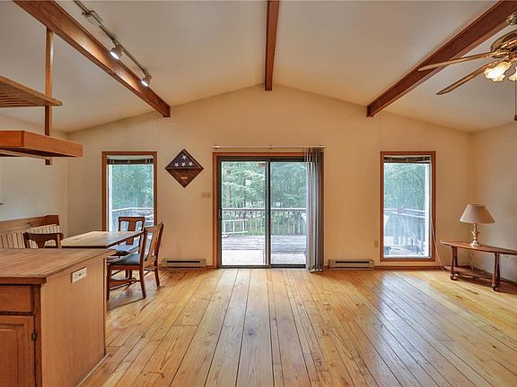 Some new photos added. New carpet/flooring will be installed in both bedrooms and hallway prior to closing! Situated on a beautifully serene and tranquil wooded 1.37 acre lot, with a bonus 960 sq. ft. pole barn, this cozy Effort, Pa home offers so much potential! The thoughtful design features 2 bedrooms and an open concept eat-in kitchen and living room with vaulted ceilings and wood floors. Sliding doors lead to a deck, perfect for grilling and entertaining. The walk-out lower level offers great finishing potential! It is already partially finished and rough plumbed for a half bath in the laundry room. The wood stove provides great heat. Enjoy the community clubhouse and outdoor pool and new playground! This home is ready for the next owner's touches! Low taxes, Pleasant Valley Schools, and minutes to Mt. Effort, downtown Broadheadsville, and rt 33.
