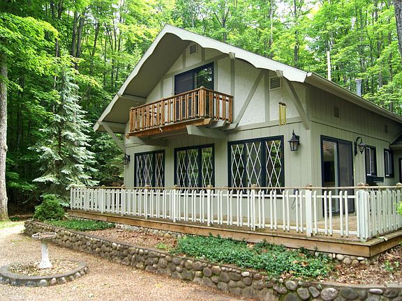 A cut above the rest. This beautifully updated chalet has many unique features including a full laundry room, garden room with tongue & grove pine paneling, stone patio, a large mud room, ceramic tile flooring, field stone fireplace, an upgraded kitchen with stainless steel appliances, newer natural gas furnace, ceiling fans in every room, & extensive landscaping. All of this nestled on two wooded lots with common area association property behind. Enjoy Michaywe amenities including the indoor/outdoor pools, and private access to beautiful all-sport Opal Lake. Call for your personal tour.