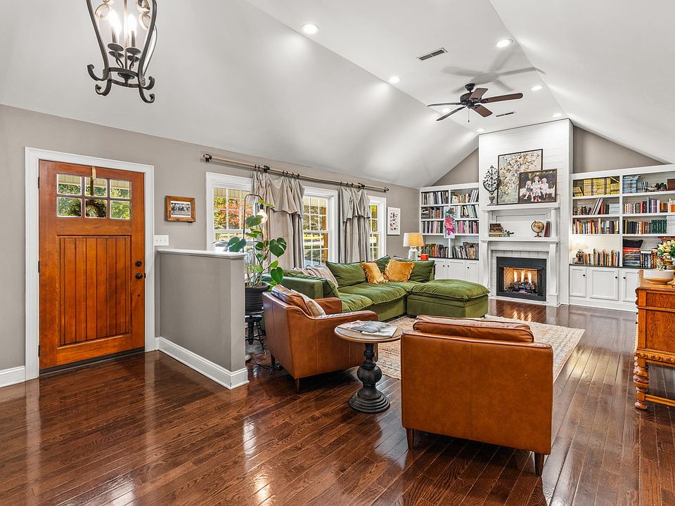 Almost completely rebuilt and renovated (roof to foundation) in 2013. Sought after design and appeal with vaulted ceiling great room featuring gas log fireplace with double antique mantle and custom built ins which is open to dining and kitchen. Recent update to master bathroom. The kitchen features: gas stove with double ovens, butcher block counter tops, arabesque tile backsplash, deep "work station" sink, all appliances new in 2020 plus large pantry. Dining room has tray ceiling, beadboard wainscoting and pendant lighting. Lots of inside contemporary details: custom board & batten walls; hardwood flooring; shiplap accent wall & more including the detached structure with upscale attributes: industrial concrete floor, built-ins, wood-planked ceiling, etc used as home office plus a space for gym or workshop. Must See!